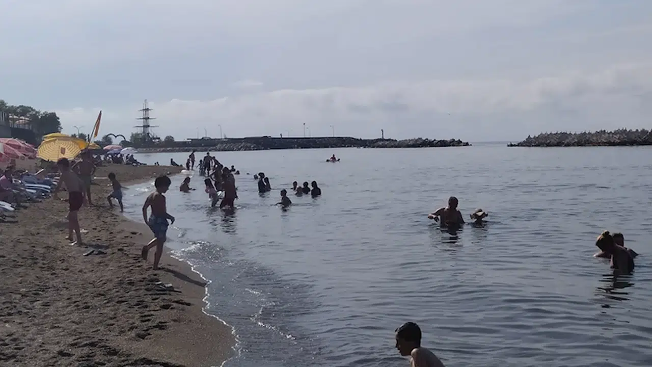 DÜZCE (AA) - Düzce'nin Akçakoca ilçesinde sıcak havadan bunalan vatandaşlar, denize girerek serinlemeye çalıştı.