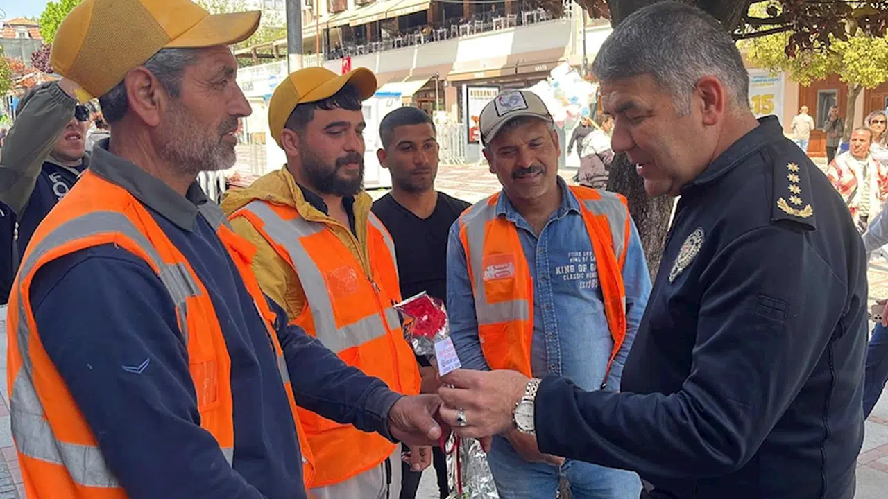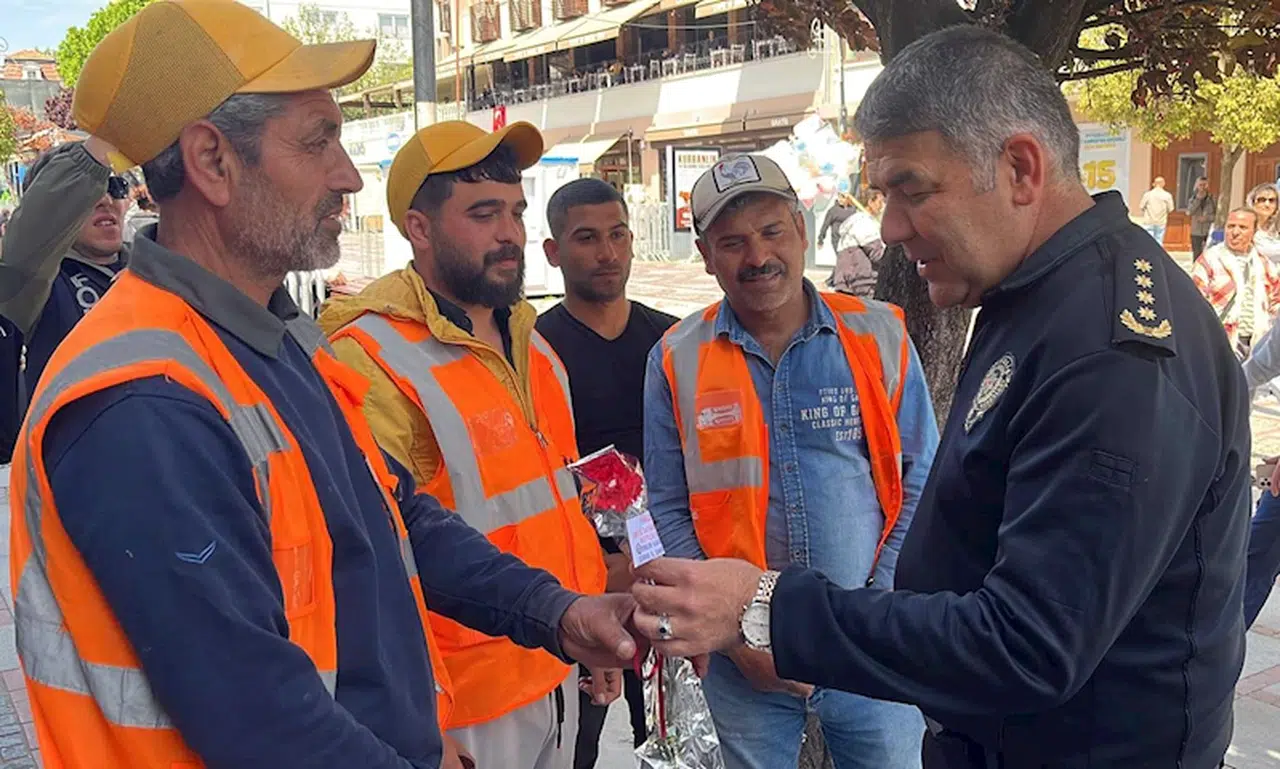 Edirne Emniyet Müdürü Karaburun, işçilere karanfil dağıttı