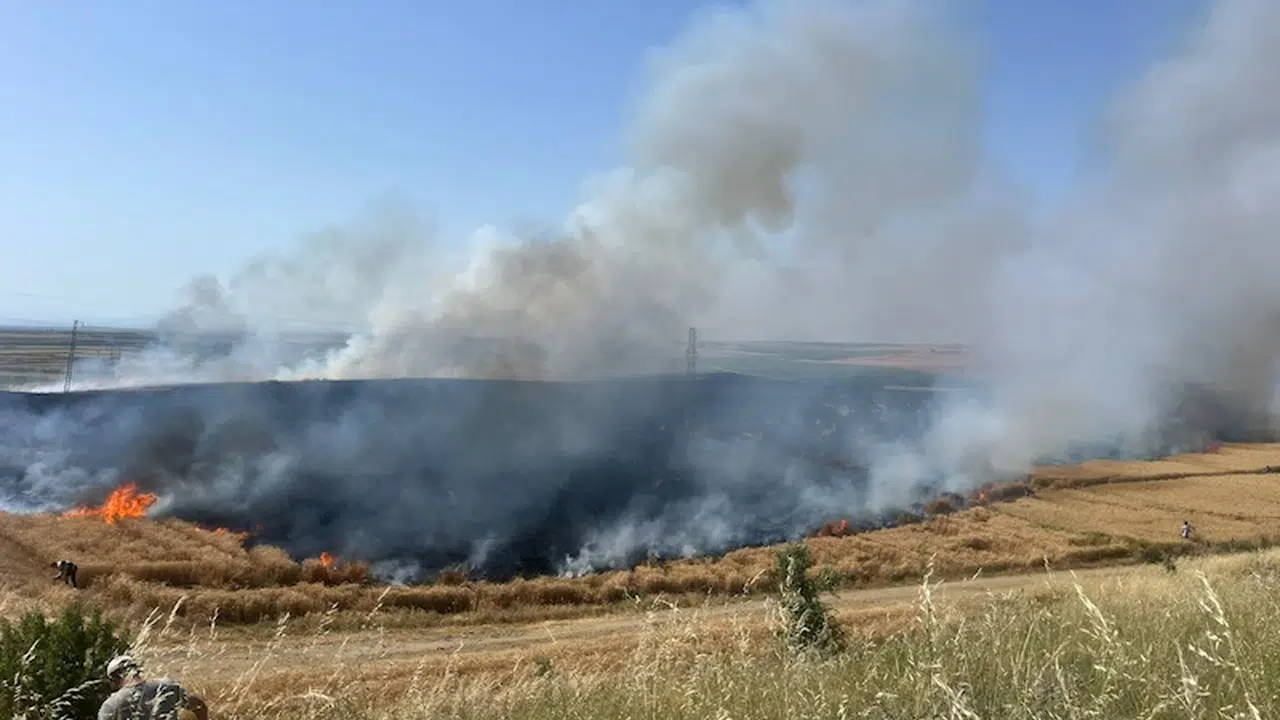 Ünsal YÜCEL/İPSALA(Edirne),(DHA)-EDİRNE’nin İpsala ilçesine bağlı Kocahıdır köyünde elektrik telinin kopması sonucu çıkan yangında yaklaşık 110 dekar buğday ekili tarla zarar gördü.