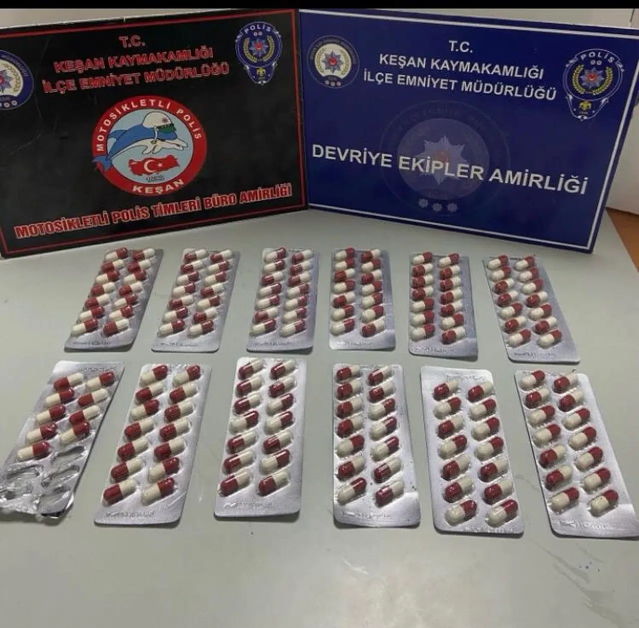 Keşan İlçe Emniyet Müdürlüğü ekipleri, Yenimescit Mahallesi Kayalıdere Sokak üzerinde durumundan şüphelendiği S.C.’yi durdurarak, üzerini aradı. S.C.’nin elinde taşıdığı siyah poşette 163 sentetik uyuşturucu hap ele geçirildi. S.C., polis tarafından gözaltına alındı. (DHA)