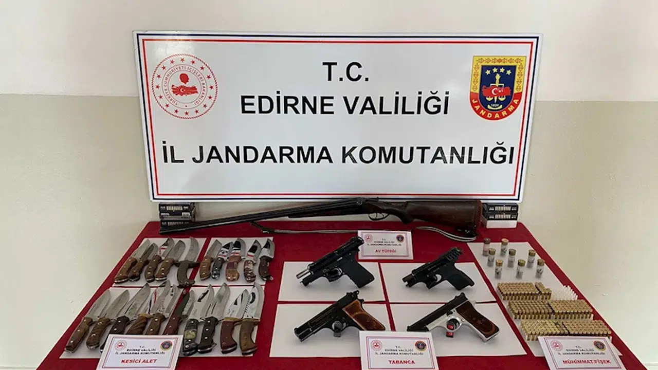 İl Jandarma Komutanlığı Kaçakçılık ve Organize Suçlarla Mücadele Şube Müdürlüğü ekipleri, Havsa ilçesine bağlı Habiler köyünde bir evde dedektör köpeğinde katılımıyla arama yaptı. Aramada, 4 ruhsatsız tabanca, 4 şarjör, 262 mermi, 23 bıçak, 1 ruhsatsız av tüfeği ve 8 fişek ele geçirildi. Olayla ilgili 1 kişi gözaltına alındı. (DHA)