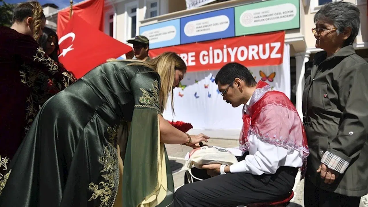 Edirne'de engelli öğrencilere temsili 'asker kınası' eğlencesi