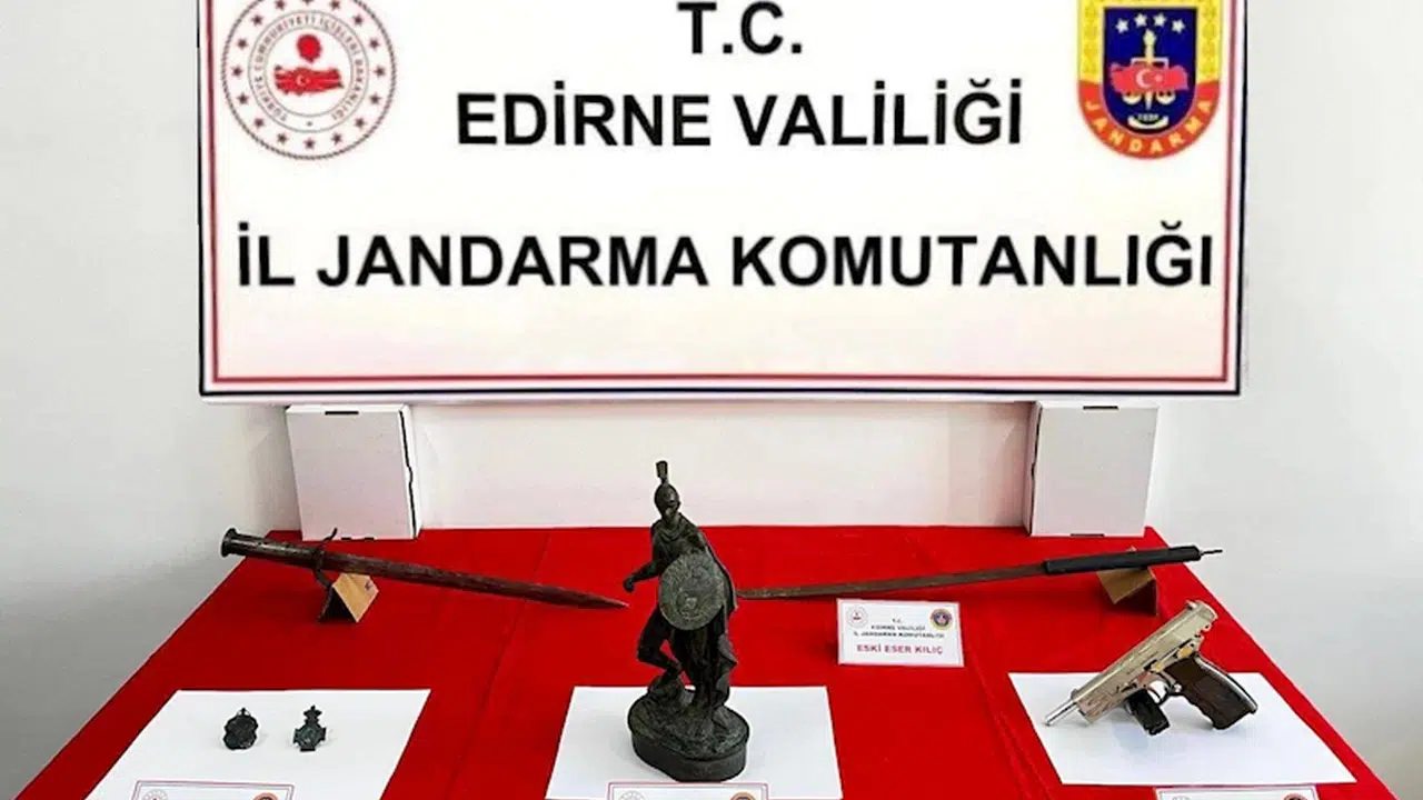 İl Jandarma Komutanlığı asayiş timleri ve Jandarma Suç Araştırma Timi (JASAT) dedektifleri, C.B.’ye ait araç ve evde arama yaptı. Aramada, tarihi eser niteliği taşıyan asker figürlü heykel, 2 madalyon, 2 kılıç ve 1 ruhsatsız tabanca ele geçirdi. Gözaltına alınan C.B. hakkında adli işlem başlatıldı. (DHA)