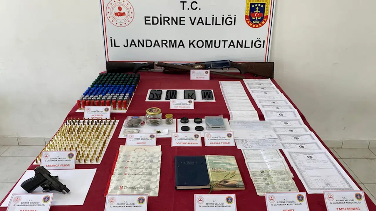 İl Jandarma Komutanlığı ekipleri, İpsala ilçesinde tefecilere yönelik operasyon düzenledi. 4 adrese yapılan baskınlarda 22 gram uyuşturucu, 1 uyuşturucu öğütme aparatı, 1 hassas terazi, 1 ruhsatsız tabanca, 389 tabanca mermisi, 29 senet, 9 çek defteri, 13 tapu, 2 alacak-verecek ajandası ve 4 cep telefonu ele geçirildi, 4 şüpheli de gözaltına alındı. Şüphelilerin jandarmadaki işlemleri sürüyor. (DHA)