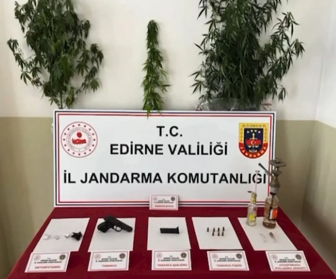 İl Jandarma Komutanlığı ekipleri, uyuşturucu satıcılarına yönelik Havsa, Süloğlu ve merkez ilçedeki adreslere eş zamanlı operasyon düzenledi. Ev ve araçlarda dedektör köpekle yapılan aramalarda 49 bin 500 kök Hint keneviri, 5 gram metamfetamin, 1 gram kokain 1 ruhsatsız tabanca ve 7 mermi ele geçirildi. Operasyonda, 4 şüpheli gözaltına alındı. (DHA)