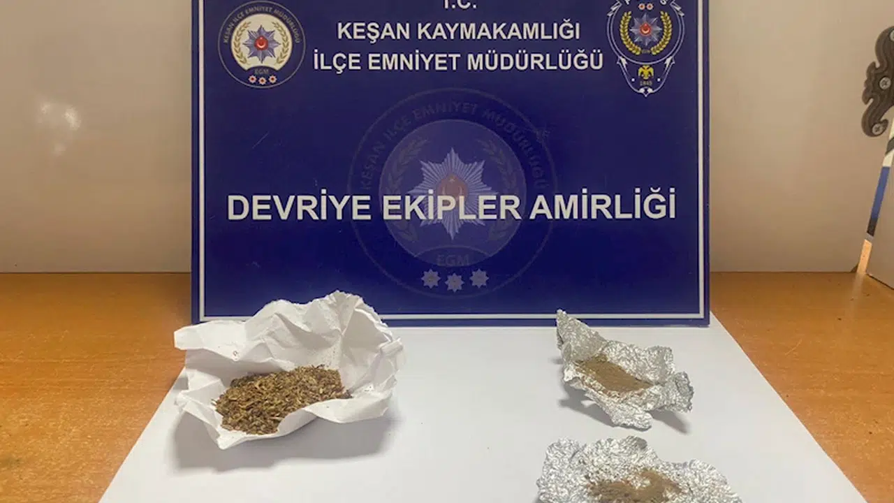 Ünsal YÜCEL/EDİRNE,(DHA)-EDİRNE’nin Keşan ilçesinde polis tarafından üzerinde bir miktar uyuşturucu ele geçirilen 4 şüpheli, gözaltına alındı.