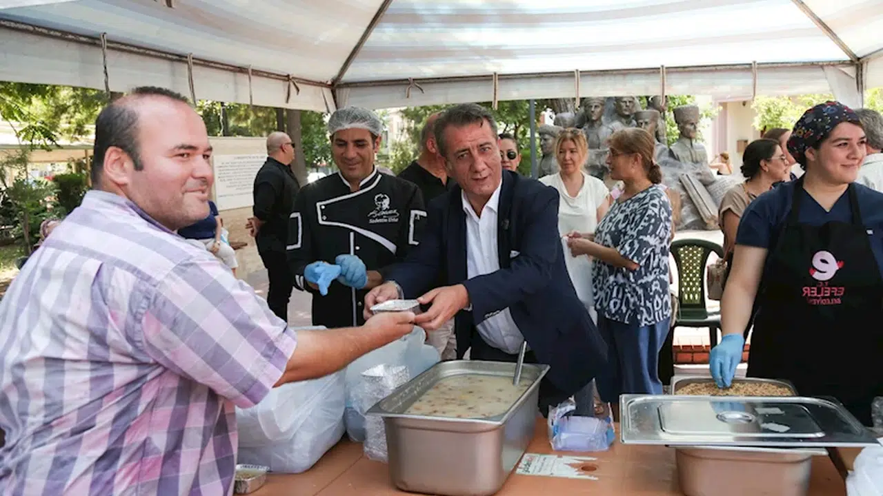 Efeler Belediyesi tarafından Uğur Mumcu Parkı'nda düzenlenen etkinlikte vatandaşlara aşure ikram edildi. Etkinliğe katılan çok sayıda vatandaş Efeler Belediye Başkanı Anıl Yetişkin'in dağıttığı aşureleri alarak geleneği birlikte yaşattı. Başkan Yetişkin, aşure dağıtımının ardından vatandaşlarla da bir araya gelerek sohbet etti ve ihtiyaçlarını dinledi.