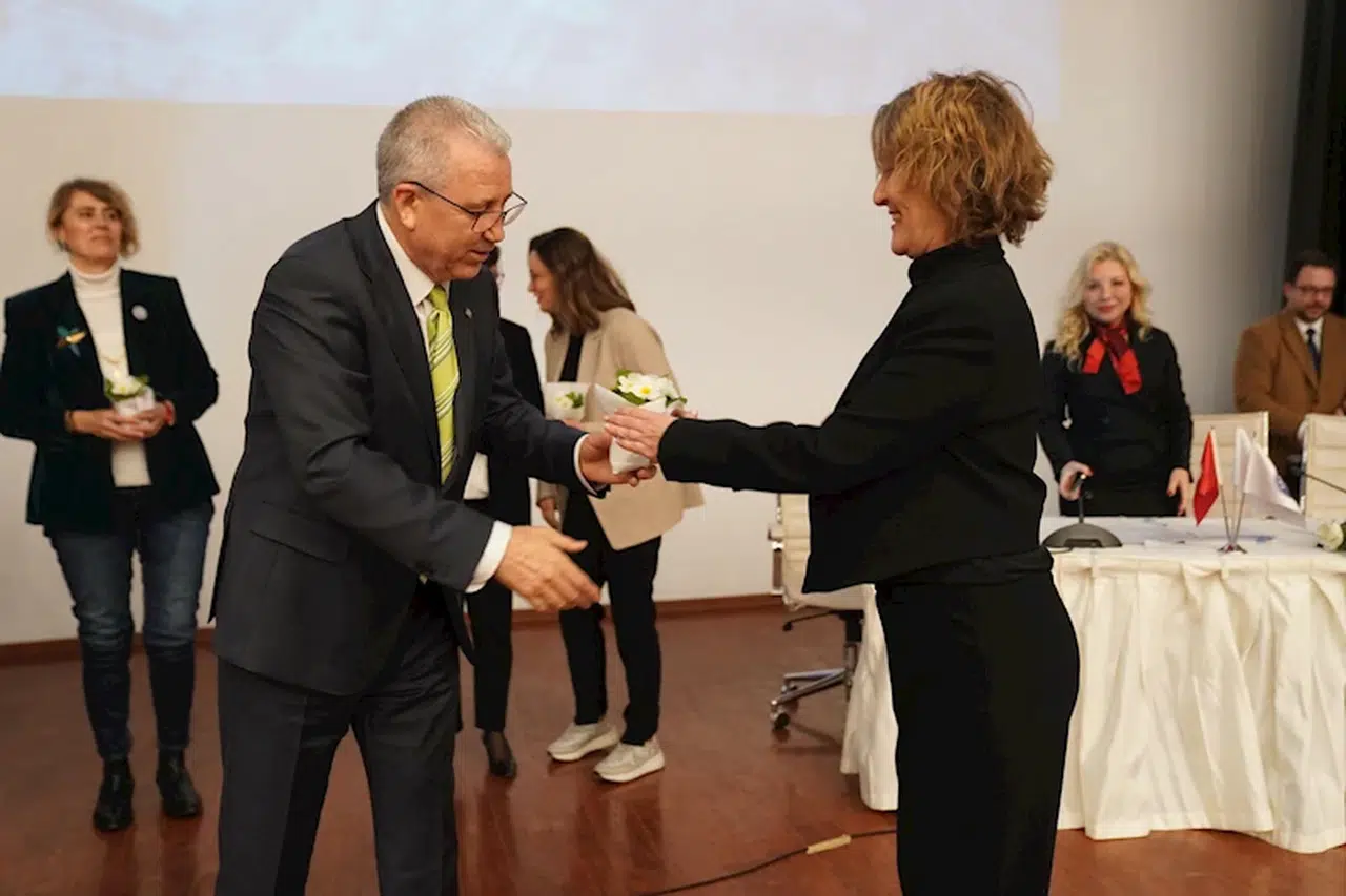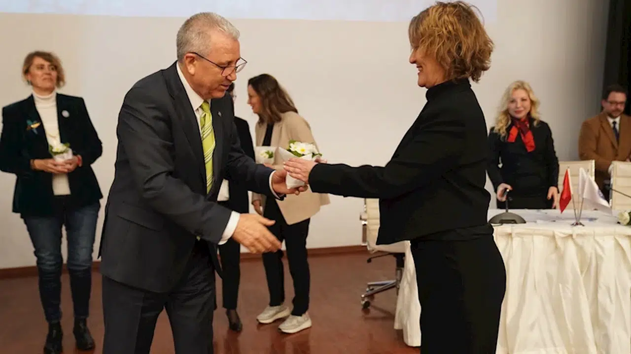 İZMİR, (DHA)-EGE Üniversitesi Rektörü Prof. Dr. Necdet Budak, 8 Mart Dünya Kadınlar Günü dolayısıyla olağan senato toplantısının ardından kadın senatörlere ve idari birimlerde görev yapan kadın çalışanlara, Bayındır Meslek Yüksekokulu Peyzaj ve Süs Bitkileri Programı tarafından yetiştirilen çiçekleri takdim etti.