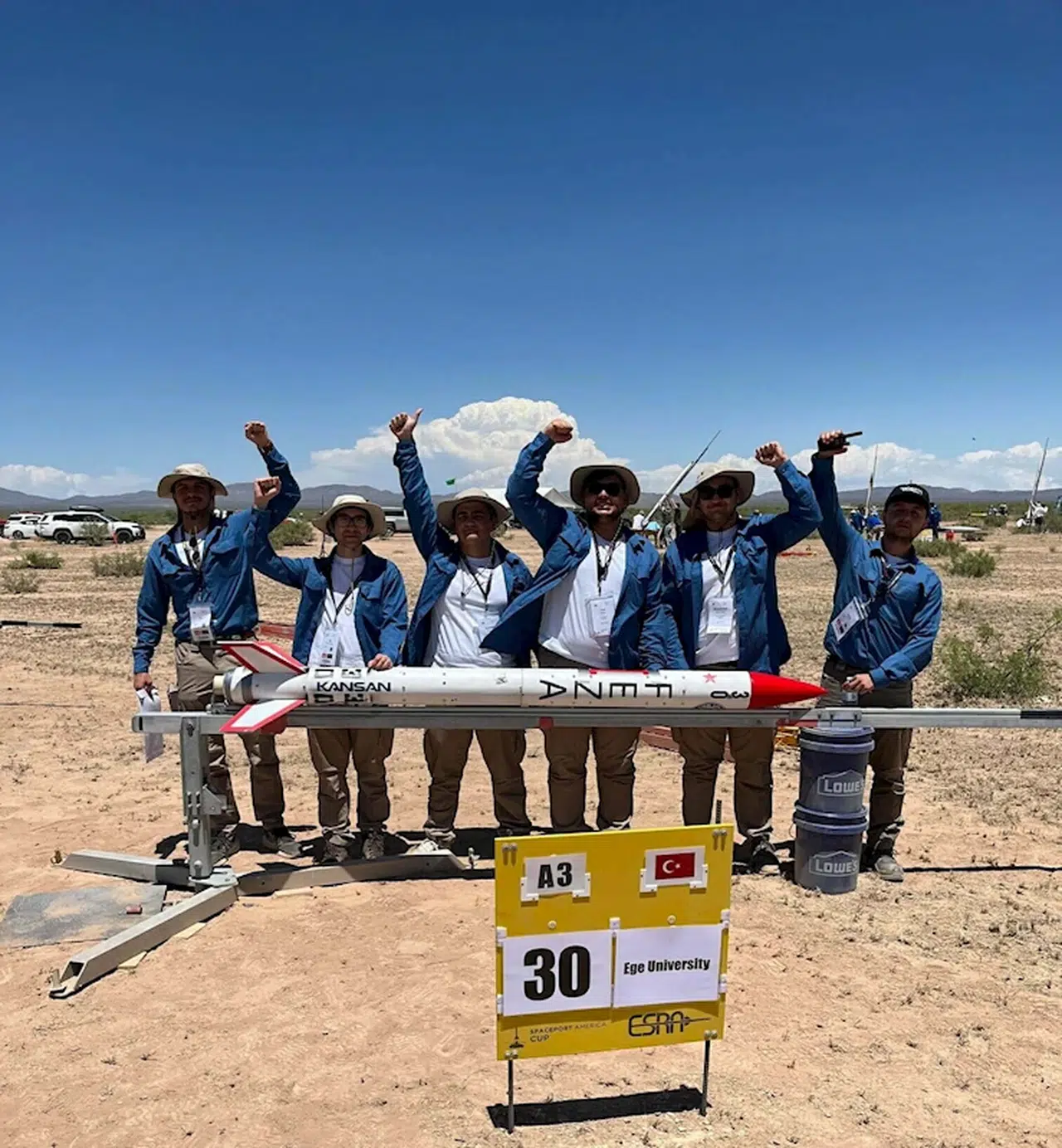 Ege Üniversitesi Mühendislik Fakültesi öğrencilerinden oluşan Ege Aerospace Takımı, ABD'de düzenlenen Spaceport America Cup 2024 yarışmasına katıldı. Kansan, Roketsan, Aselsan, TEI gibi Türkiye'nin önde gelen kurumlarının sponsorluğunda çalışmalarını sürdüren takım, yarışmaya 7 kişilik ekiple katıldı. 25 ülkeden öğrencilerin katıldığı yarışmada, Ege Aerospace Takımı başarılı bir fırlatma gerçekleştirdi. Geliştirilen FEZA-24 isimli sonda roketi 9 bin 400 feet irtifaya ulaşarak görevini yerine getirdi. Geliştirilen sistemler, operasyonun tüm aşamalarını başarılı bir şekilde tamamladı. Fırlatma sonrasında FEZA-24 roketinin tüm parçaları hasarsız bir şekilde kurtarıldı ve sistemin yeniden kullanılabilirliği ispatlandı. Geliştirilen sistemler, yarışma hakemleri tarafından 2 farklı ödüle layık görüldü. Takım son derece etkileyici sunumu ile 'en iyi sunum ödülüne' ve yarışmanın ilk atışlarından birini gerçekleştirerek 'erken fırlatma ödülüne' sahip oldu. Takım kaptanı Enes Bitigen, 'proje yöneticiliği ödülü' alırken takım üyesi Ata Kerem Manyaslı ise 'güvenlik uzmanı ödüllerini' aldı.