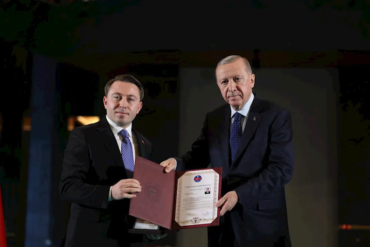 Seyfettin EKEN/ DİYARBAKIR, (DHA)- DİYARBAKIR’ın Eğil Kaymakamı Volkan Hülür, üstün hizmet ve başarılarıyla devlet idaresindeki örnek çalışmaları neticesinde “Başarılı İdareci Merhum Vali-Celalettin Tüfekçi Meslek Ödülü”ne layık görüldü. Kaymakam Hülür, ödülünü Beştepe Millet Kongre ve Kültür Merkezi’nde düzenlenen törenle Cumhurbaşkanı Recep Tayyip Erdoğan’dan aldı.