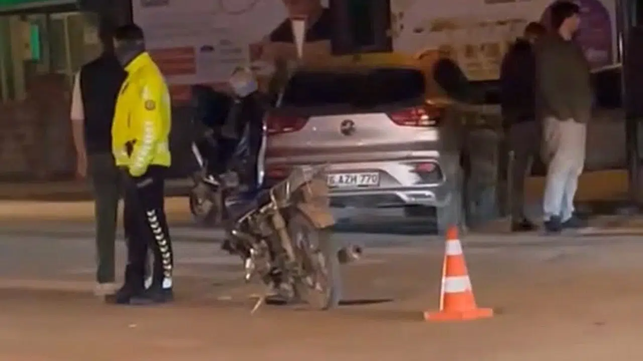 ‘dur' ihtarında bulundu. Kaçmaya başlayan Ozan C., kırmızı ışıkta geçti. Motosiklet, Uğur Y. (35) yönetimindeki 16 AZM 770 plakalı otomobille çarpıştı. Kazada otomobildeki Mehtap G. (33) yaralandı. Yaralı özel araçla İnegöl Devlet Hastanesi'ne kaldırılırken, devrilen motosikletten düşüp, yaya olarak kaçmaya çalışan ehliyetsiz sürücü Ozan C. yakalandı. Çalıntı olduğu belirlenen motosiklet otoparka götürülürken, olayla ilgili soruşturma başlatıldı. (DHA)