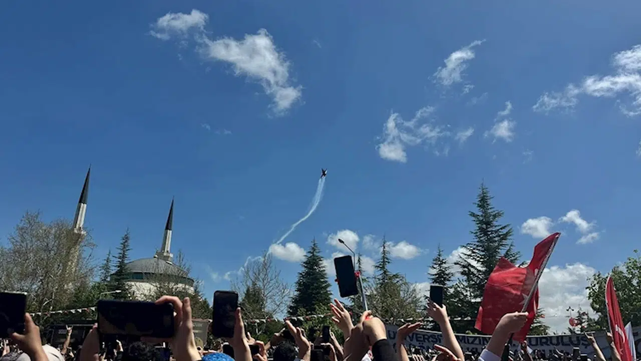 Binbaşı Bakıcı'nın uçaktan yaptığı konuşması bol bol alkışlandı. Bazı izleyiciler ise gösteriyi izlerken gözyaşlarını tutamadı. (DHA)