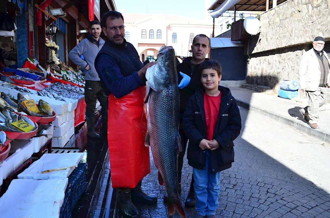 Elazığ’da 69 kiloluk turna balığı, tezgahta ilgi odağı oldu