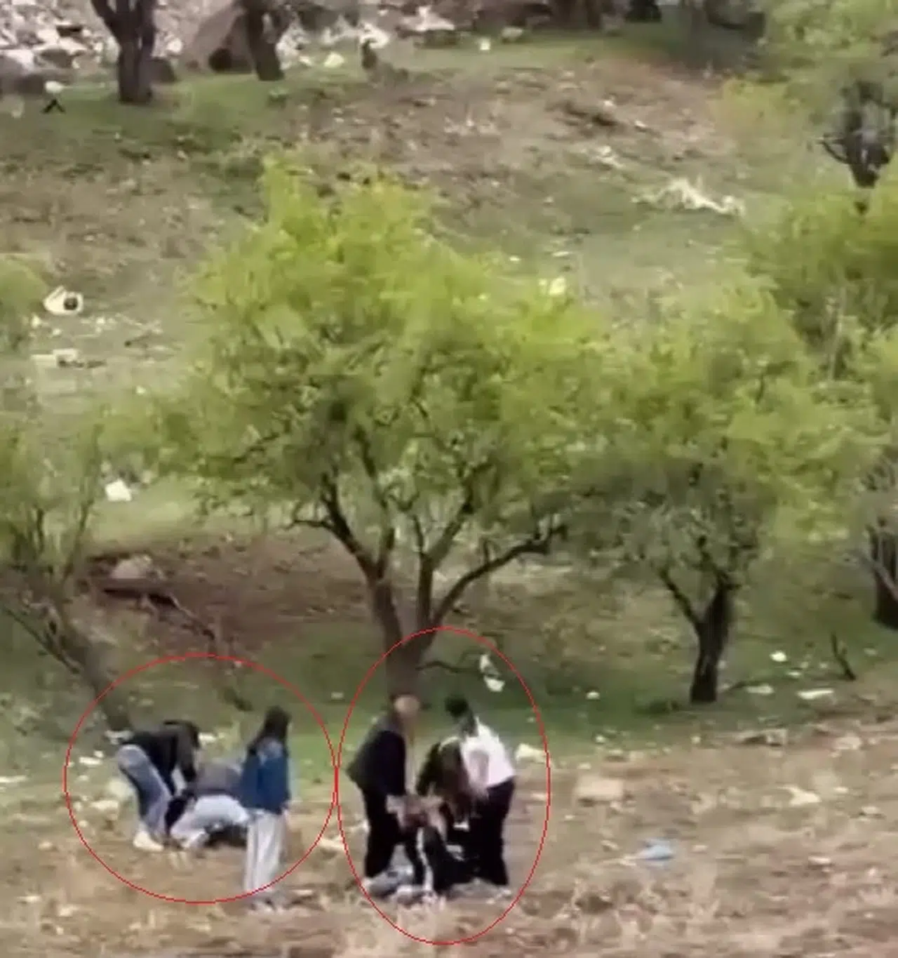 Elazığ’da Çatalçeşme Mahallesi’nde boş bir arazite bir araya gelen bir grup genç kız, bilinmeyen nedenle kavga etti. Tekme ve yumruklarla birbirlerine saldıran genç kızları çevrede toplanan arkadaşları ayırdı. Cep telefonu kamerasıyla kaydedilen kavga anları, sosyal medyada paylaşıldı. (DHA)