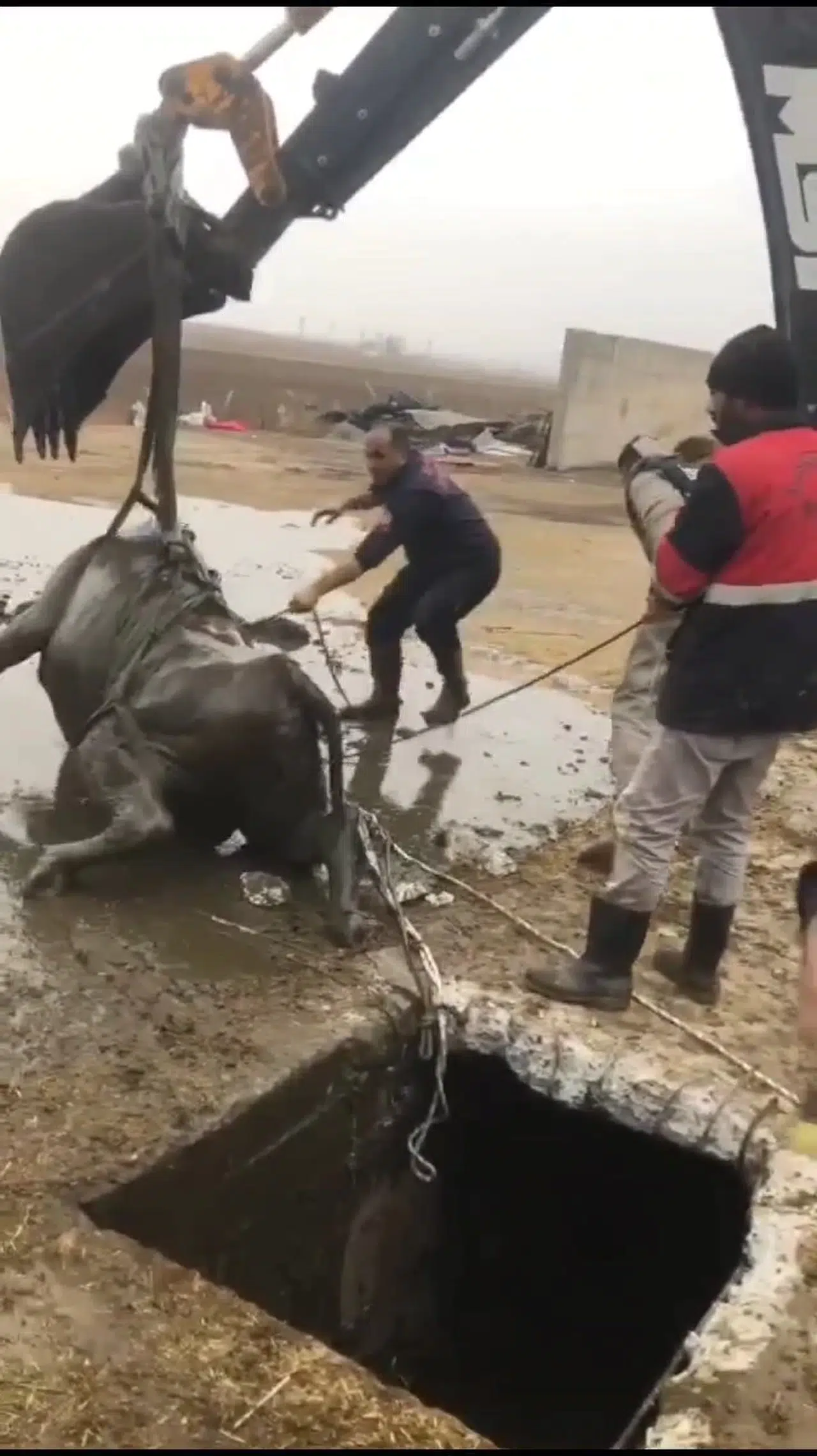 Tekin YALÇINKAYA/ELAZIĞ,(DHA)-ELAZIĞ’da, 3 metre derinliğindeki kuyuya düşen gebe inek, itfaiye ekiplerinin çalışmasıyla kurtarıldı.