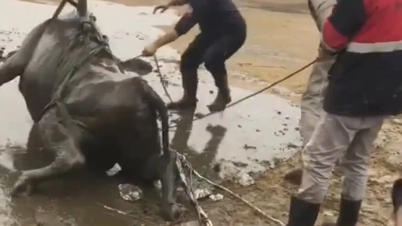 Elazığ’da, kuyuya düşen gebe inek kurtarıldı