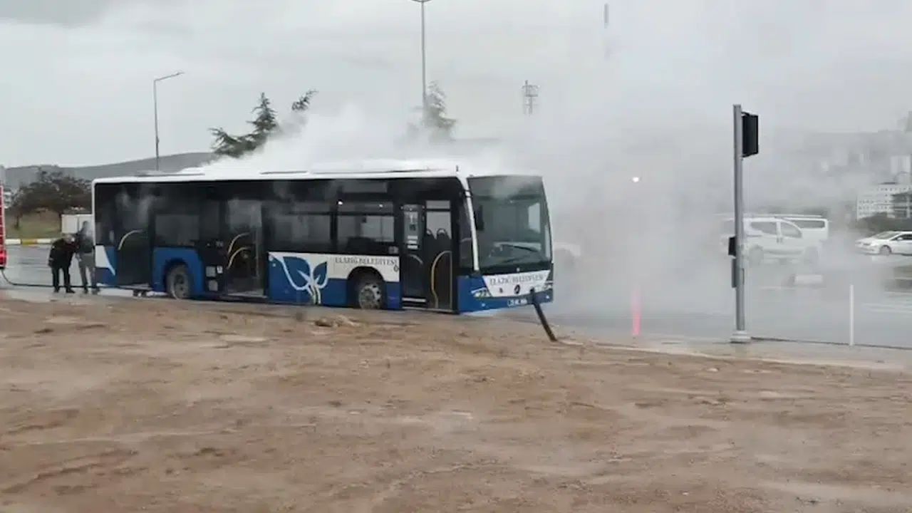 Olay, akşam saatlerinde Güney Çevre yolunda meydana geldi. Elazığ Belediyesi’ne ait yolcu otobüsü, seyir halindeyken henüz bilinmeyen bir nedenle motor kısmından alev alarak yanmaya başladı. Dumanlar yükseldiğini fark eden şoför, aracı sağa çekerek yolcuları tahliye edip durumu 112 Acil Çağrı Merkezi’ne bildirdi. İhbarla olay yerine İtfaiye ekipleri sevk edildi. Ekiplerin müdahalesiyle yangın kontrol altına alınarak söndürüldü. Olayda yaralanan olmazken, otobüste hasar oluştu. Olayla ilgili inceleme başlatıldı.(DHA)
