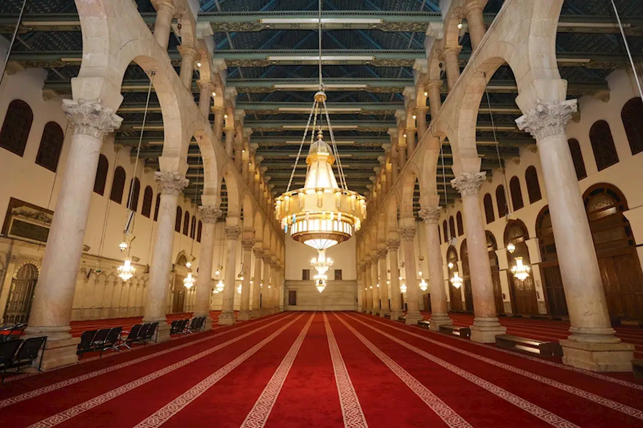 Ramazan ayının ilk teravih namazında üzerinde ibadet edilmesi hedeflenen halıların son üretilen kısımları bugün cami içerisine yerleştirildi. Halıların serilmesi için bir heyet, Şam’a gitti. Heyette İlim Yayma Vakfı Mütevelli Heyeti Başkanı Bilal Erdoğan, AK Parti TBMM Grup Başkanvekili Abdulhamit Gül, milletvekilleri ve Gaziantep Büyükşehir Belediye Başkanı Fatma Şahin yer aldı. Heyet, camide halıların serilmesi sürecine eşlik etti. Halıların yerleştirilmesi sonrası cami, ramazan ayının ilk teravih namazı için hazır hale getirildi. Yeni halılarda ilk cuma namazı kılındı.