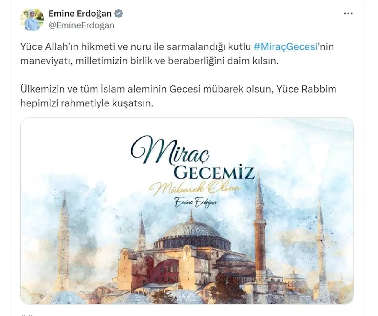 Emine Erdoğan, İslam aleminin Miraç Kandili'ni kutladı