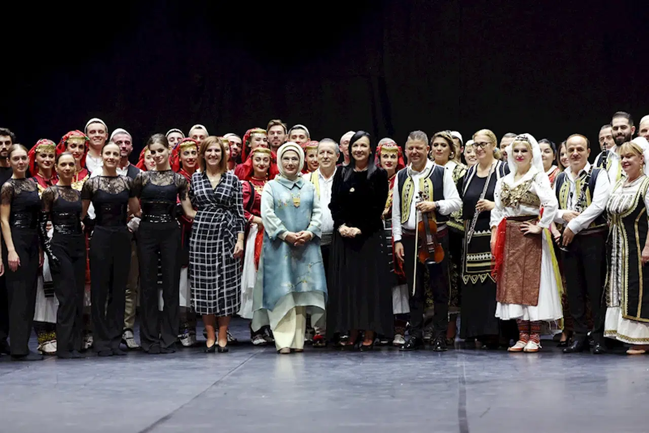 Emine Erdoğan, Arnavutluk'un başkenti Tiran'da Linda Rama ile Ulusal Opera ve Bale Tiyatrosu'nu ziyaret ederek burada düzenlenen programı izledi.
