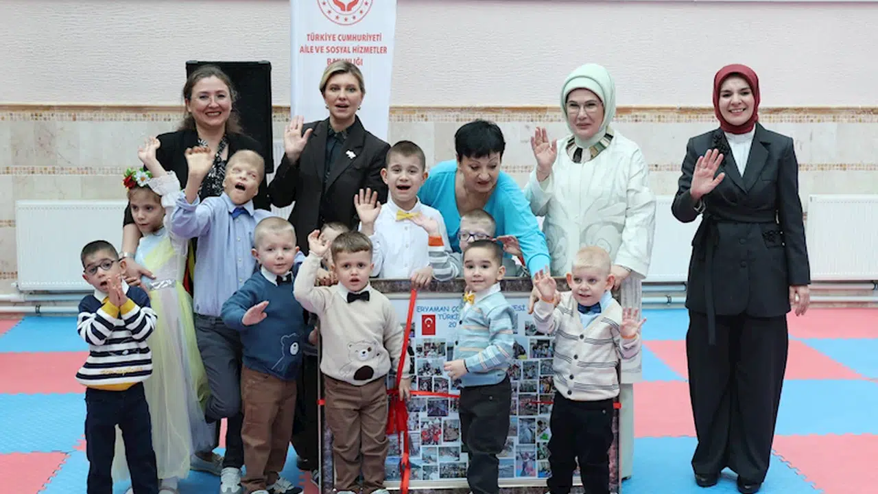 Emine Erdoğan ile Olena Zelenska, savaşın başlamasının ardından Ukrayna'nın Odesa kentindeki Soneçka Çocuk Evi'nde kalan 34'ü yetim ve korunma ihtiyacı olan çocuk, 13'ü bakım personeli çocuğu olmak üzere 47 çocuk ile 23 bakım personeli/refakatçiden oluşan 70 Ukraynalı savaş mağdurunun, Eryaman Çocuk Evleri Sitesi'ne tahliyesi konusunda anlaşmıştı. Bunun üzerine söz konusu çocuklar ve refakatçileri, 20 Kasım 2022'de Eryaman Çocuk Evleri Sitesine nakledilmişti. Çocuklardan 24'ünün ülkelerinde evlat edinme ve koruyucu aile hizmetinden yararlandırılmak üzere Ukrayna'ya dönüşleri sağlandı. Bu yılbaşı itibarıyla Çocuk Evleri Sitesi'nde 10'u yetim ve korunma ihtiyaçlı çocuk, 2'si bakım personeli çocuğu ve 7 kadın bakım personeli/refakatçi olmak üzere 19 savaş mağduru Ukraynalı bulunuyor.