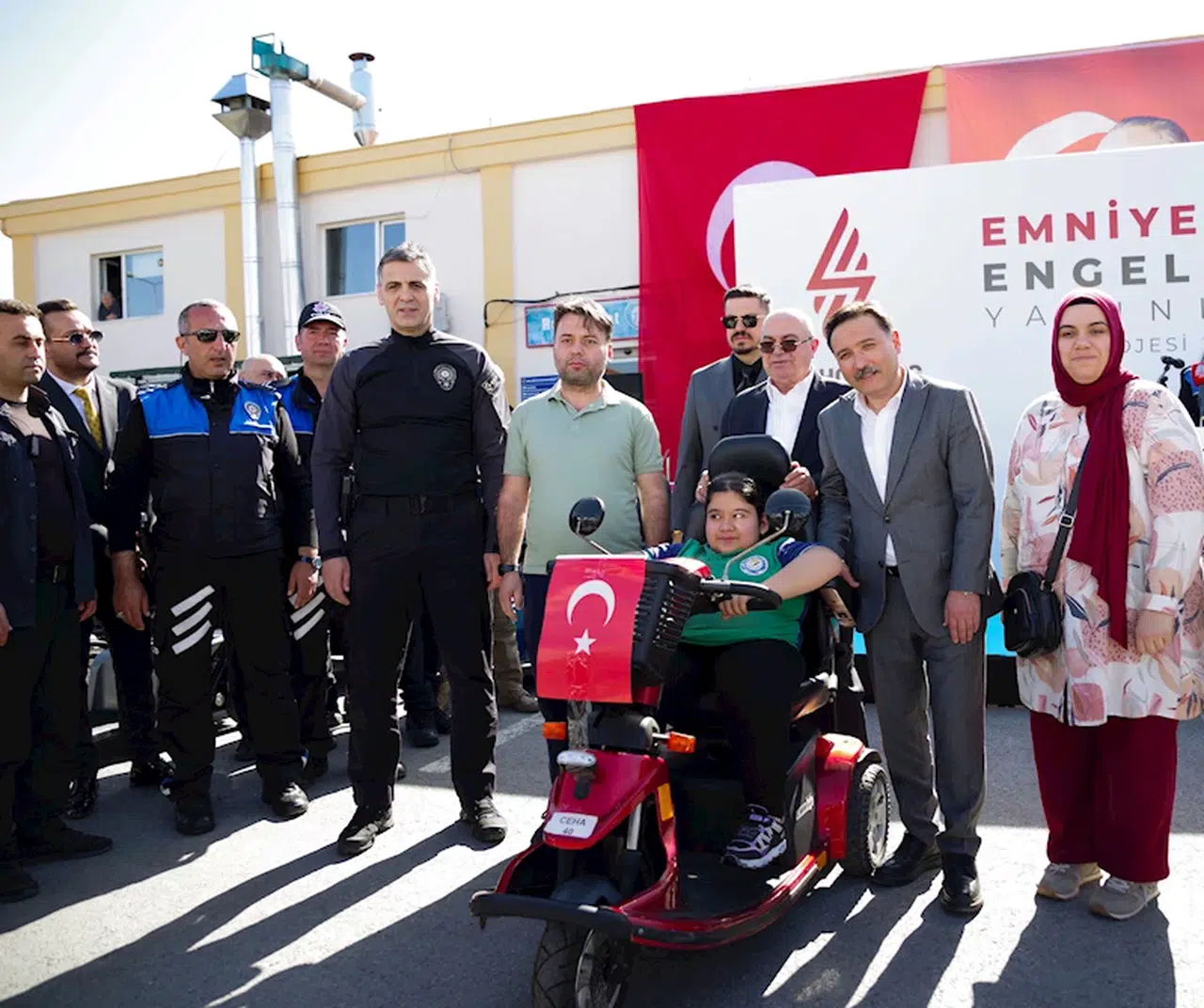 Emniyetle Engelsiz Yarınlar, kamunun öncülüğünde, özel sektör ve hayırseverlerin destekleriyle büyüyen bir proje olarak dikkat çekiyor. Kayseri İl Emniyet Müdürlüğü Toplum Destekli Polislik Şube Müdürlüğü ve CEHA Büro Mobilyaları A.Ş. ortaklığı ile düzenlenen akülü araç teslim törenine Kayseri Valisi Gökmen Çiçek, Kayseri Milletvekili Şaban Çopuroğlu, Garnizon Komutanı Hava Pilot Tuğgeneral Hasan Volkan Güleryüz, Kayseri Büyükşehir Belediye Başkanı Memduh Büyükkılıç, Kayseri İl Emniyet Müdürü Atanur Aydın ve hayırsever iş insanı Çetin Şen katıldı.