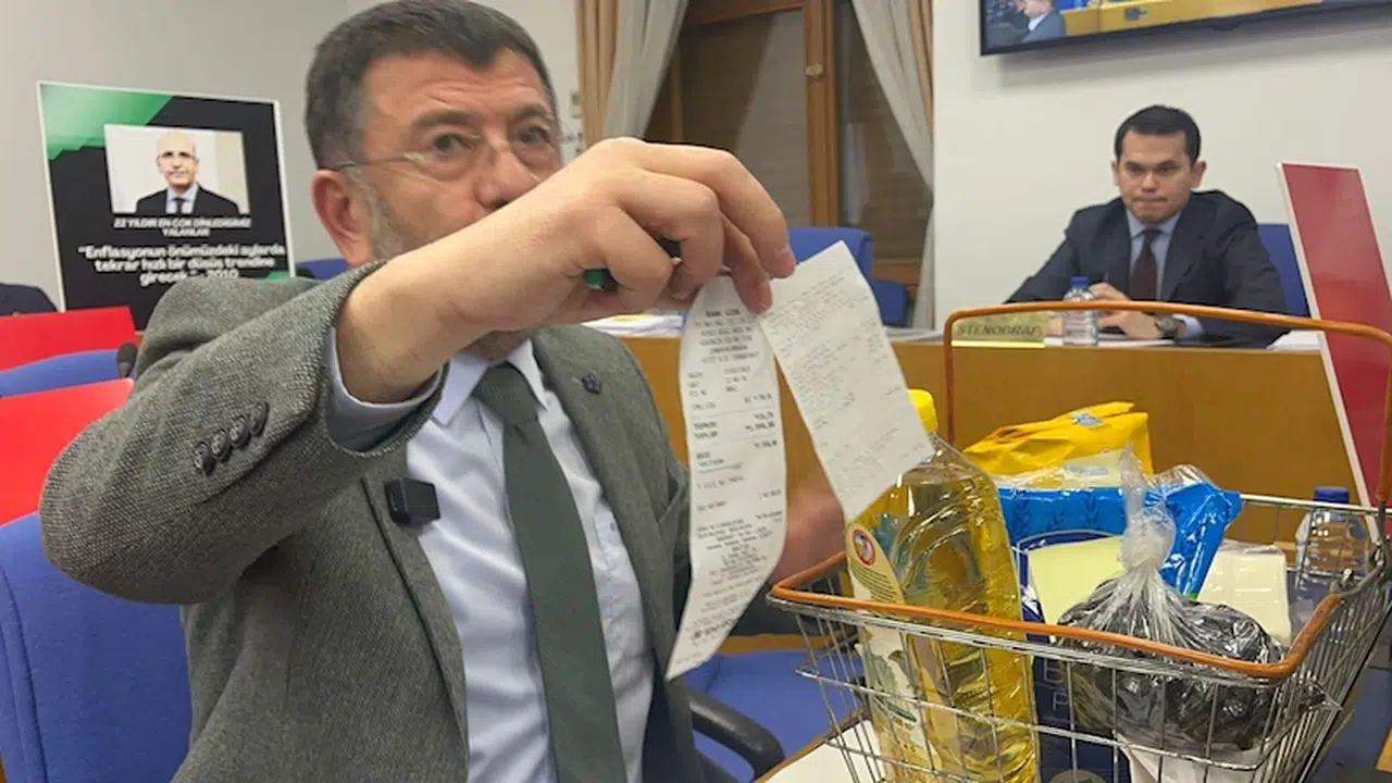 "Tüm bu sepetin toplamı 1998 lira. Fişi de burada, bakın burada 1 kilo zeytin dahi alamıyoruz. Bu halka bunu reva görenlere yazıklar olsun, bu halka reva görenlerin alayına kırmızı kart. Bakın fiş bu, işte yapılan emekli zammı ile alınabilen ürünler sadece bunlar. Bunların sokaktan haberi yok, keşke sadece Cumhurbaşkanı Recep Tayyip Erdoğan pazar görmemiş olsaydı, AK Parti'li milletvekilleri de pazardan bihaber, yoksa bu teklif verilmezdi. Bakın arkadaşlar, asgari ücrete 22 bin lira, emekliye 14 bin 499 lira verenlerin alayına kırmızı kart gösteriyoruz."
