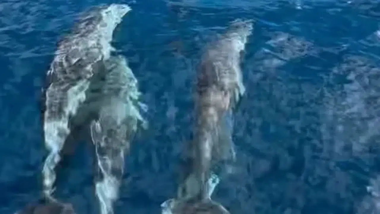 Enez sahili açıklarında tekneyle gezintiye çıkanlar, yunus sürüsüyle karşılaştı. Aniden ortaya çıkan yunuslar ön kısımda tekneyle yarışıp, çeşitli hareketler yaparken, bu anlar ilgiyle izlendi. Yunusları izleyenler o anları cep telefonuyla kaydetti