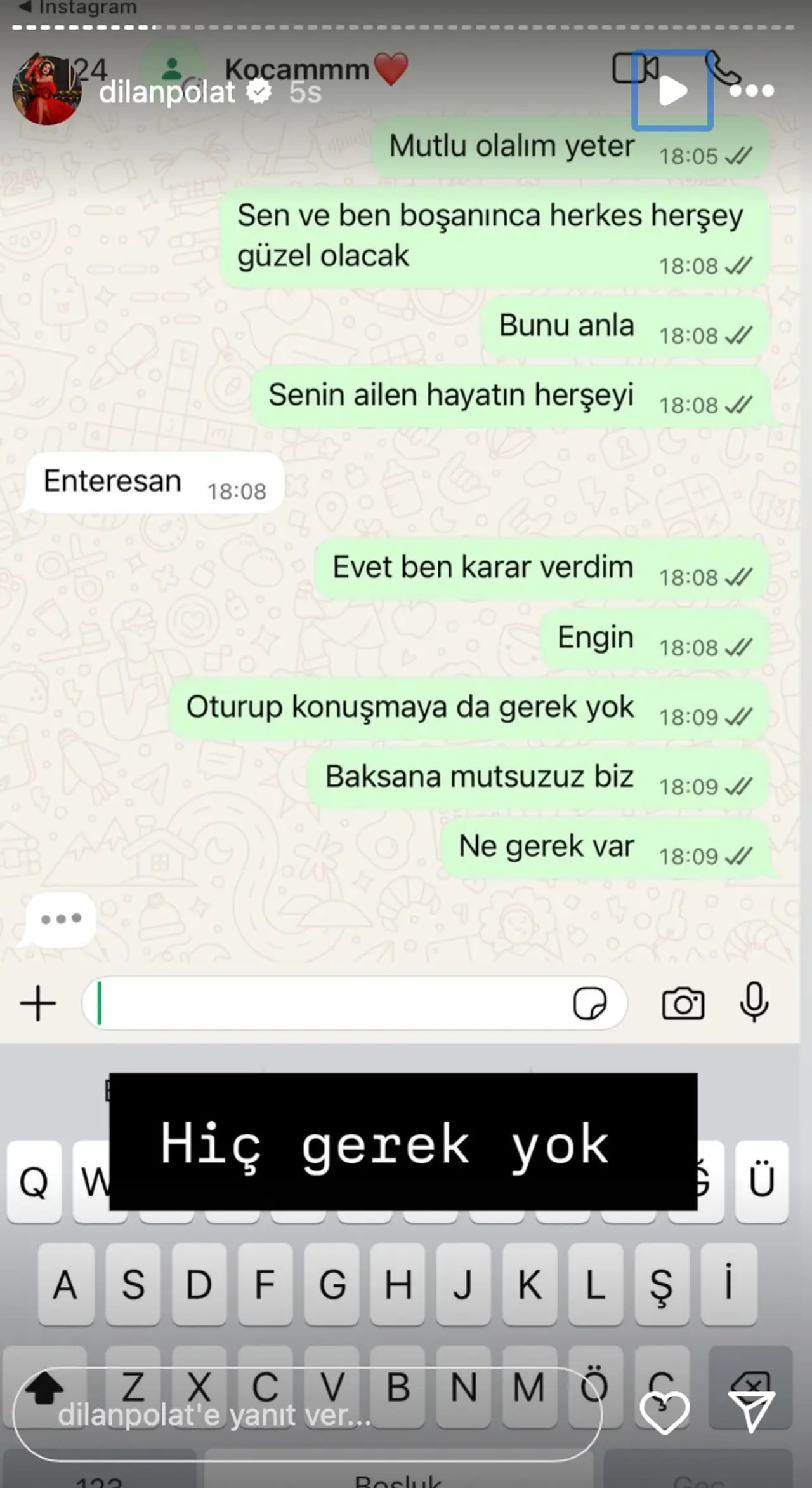 Dilan Polat, evliliği süresince yaşadığı zorlukları sosyal medya üzerinden takipçileriyle paylaşmaktan geri durmuyor. Özellikle son zamanlarda, kocası Engin Polat'tan gelen tehdit içerikli mesajları ifşa ederek dikkatleri üzerine çekti. Dilan, bu mesajlara verdiği cevaplar ve yaptığı paylaşımlar ile evliliklerinin sıkıntılı bir döneme girdiğini açık bir şekilde gözler önüne serdi. “Boşanıyorum senden, sana şaka geliyor” şeklindeki yanıtı, takipçileri tarafından ilgiyle karşılandı ve ikili arasındaki gerilimi artırdı.