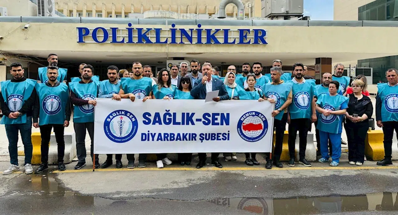 Sağlık-Sen Diyarbakır Şube Başkanı Nurhak Ensarioğlu, Dicle Üniversitesi Hastanesi önünde düzenlenen basın açıklamasında konuştu. Ebe ve hemşirelerin sağlık sisteminin temel taşları olduğunu vurgulayan Ensarioğlu, birçok sağlık çalışanının geçim sıkıntısı çektiğini ifade ederek, şöyle dedi: