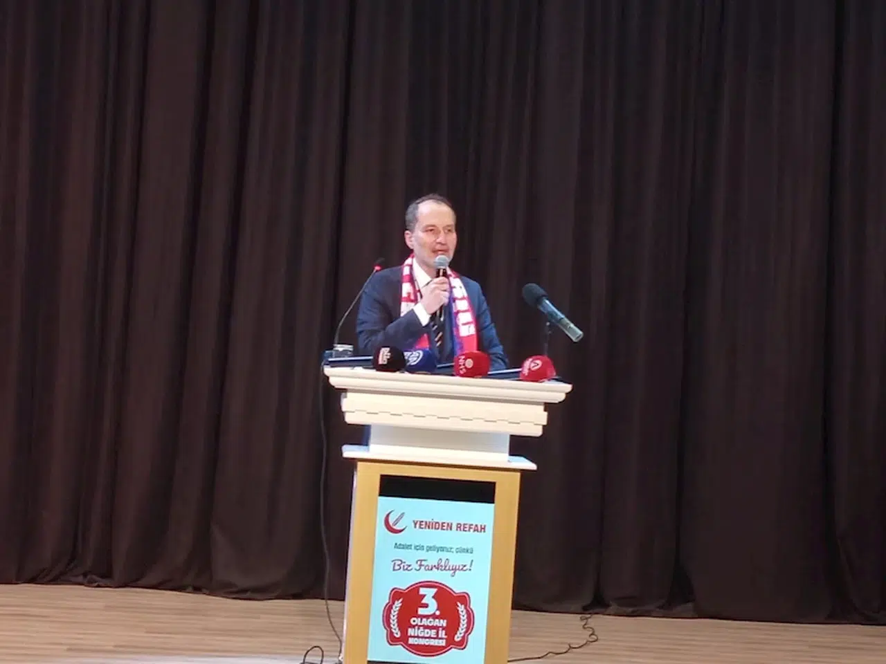 Erbakan, konuşmasında milli görüş hareketinin temel değerlerine sadık kalacaklarını vurgulayarak, “Niğde’de salonları dolduran siz değerli vatandaşlarımız, milli görüşün yeniden şahlanışının en büyük delilisiniz. Sultan Alparslan’ın, Fatih Sultan Mehmet’in, Abdülhamid Han’ın izinde; Erbakan Hocamızın gömleğini çıkarmadan yolumuza devam edeceğiz” dedi.
