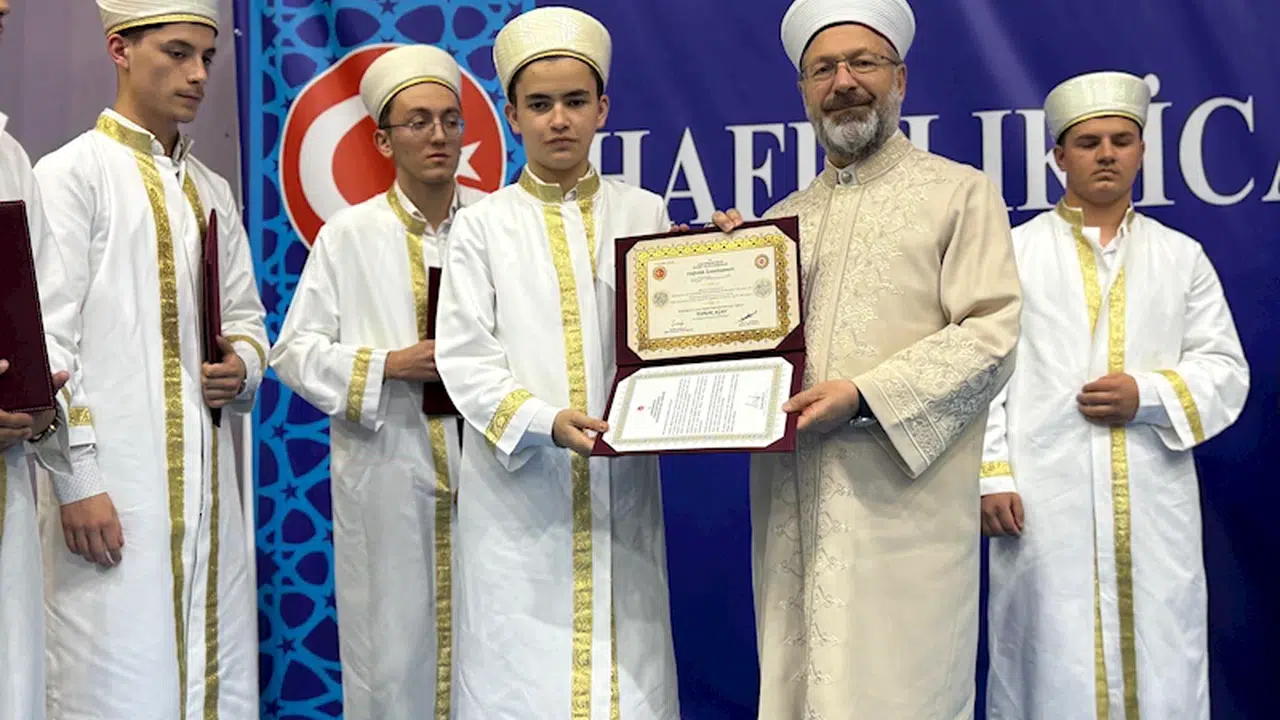 “Diyanet İşleri Başkanlığı’nda farklı unvanlarda görev yapan 150 bine yakın hocanın 50 bine yakını hamdolsun hafız, yani 3’te 1’i hafız. İnşallah sizler de eğitimlerinizi tamamladıktan sonra Diyanet İşleri Başkanlığı’nın mihraplarını, minberlerini, kürsülerini ya da Kur’an kurslarımızın sınıflarını hafızlığınız ile zenginleştireceksiniz” diyen Erbaş, şöyle konuştu: