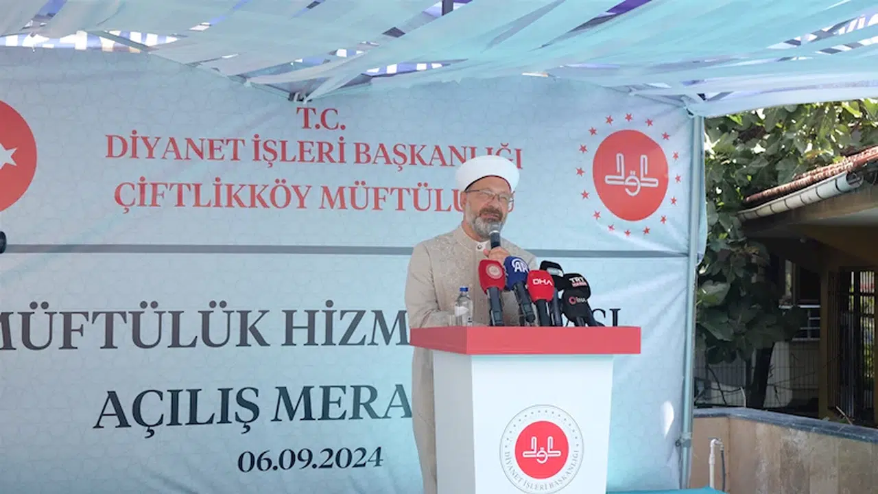 Müftülüklerin, toplumun birliği ve beraberliği için çalıştığına dikkat çeken Ali Erbaş, “Müftülüklerimizi ben toplumlarımızın birliğinin, beraberliğinin, huzurunun adeta mayası, çimentosu olarak kabul ediyorum. Derdi olan vatandaşlarımız çekinmeyin, buyurun gelin müftülüğümüze. Yani hem dini konularda olur, toplumsal konularda olur. Bizim inancımız, sosyal bir toplum oluşturmayı hedefleyen bir inanç. İslam isminin manası barış demektir. Bu ne anlama geliyor biliyor musunuz? Peygamberler, toplumlarını barışa ulaştırmak için görevlendirilmiş kullardır. Çünkü sadece Hazreti Muhammed'in getirdiği dinin adı değil İslam. Hazreti Adem'den, Hazreti Muhammed Efendimize kadar bütün peygamberler İslam dinini tebliğ etmek için gelmişlerdir. Buradan da anlıyoruz ki insanlarımız huzurlu olsun, mutlu olsun, maddi ve manevi noktalarda birbirlerine destek olsunlar, yardımcı olsunlar. İşte bütün kurumlarımızın olduğu gibi müftülüğümüz de şehrimizin, mahallemizin, ilçemizin bu huzuruna, bu mutluluğuna ne katabilir? İyiliklerin yaygınlaşması, kötülüklerin ortadan kalkması için toplumumuza ne katabilir? Bunun gayreti içerisinde. O yüzden derdi olan, herhangi bir konuda sıkıntısı olan, dini ve manevi konular başta olmak üzere buyursunlar, müftümüz başta olmak üzere vaizlerimiz, hocalarımız onların derdini paylaşacaklar. Onların içinde bulundukları o sıkıntıları ortadan kaldırmak için elinden gelen gayreti gösterecekler. Çocuklarımızın eğitimi noktasında, din eğitimi, yaygın dil eğitiminin daha da geliştirilmesi noktasında elinden gelen gayreti gösterecekler. Şunu açıkça ifade etmeliyim ki yaygın din eğitimi noktasında müftülüklerimizin, Diyanet İşleri Başkanlığımızın, 4 yaşından itibaren yukarıya doğru, yaş sınırı olmaksızın çalışmalarımız var, faaliyetlerimiz var. 7’den 70’e diye bir söz vardı ya. Biz artık diyoruz ki 7’den önce de 70’ten sonra da vatandaşlarımıza müftülüklerimiz açık, Kur'an kurslarımız açık. Camilerimiz, herkese açık. Böyle güzel ulvi bir gaye ile çalışıyoruz” ifadelerini kullandı. (DHA)