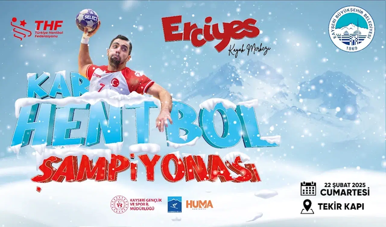 Kayseri Büyükşehir Belediyesi ve Erciyes A.Ş. ev sahipliğinde, Türkiye Hentbol Federasyonu iş birliğiyle 22 Şubat Cumartesi günü Kar Hentbol Şampiyonası düzenlenecek. Erciyes Kayak Merkezi Tekir Kapı’da başlayacak şampiyonada 60 sporcu mücadele edecek. Türkiye’nin kar hentbolu ile tanışacağı günde, sporcular ve sporseverler bir araya gelecek. (DHA)