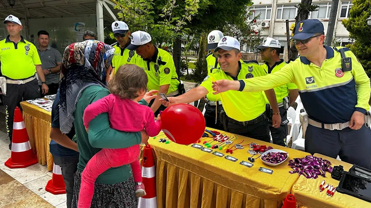 Erdemli İlçe Emniyet Müdürlüğü Trafik Büro Amirliği ve İlçe Jandarma Trafik ekipleri tarafından anlamlı bir etkinlik gerçekleştirildi. Erdemli Merkez Mahallesi Hükümet Konağı önünde kurulan 'Bir kural, bir ömür' temalı stant, vatandaşlardan ilgi gördü. Etkinlik kapsamında trafik kurallarına dikkat çekmek ve vatandaşları bilinçlendirmek amacıyla bilgilendirici el broşürleri dağıtılırken, çocuklar da unutulmadı. Trafik polisi ekipleri, çocuklara düdük, anahtarlık, kalem ve çikolata gibi çeşitli hediyeler dağıtarak hem onları sevindirdi hem de küçük yaşta trafik bilinci kazandırmayı hedefledi.