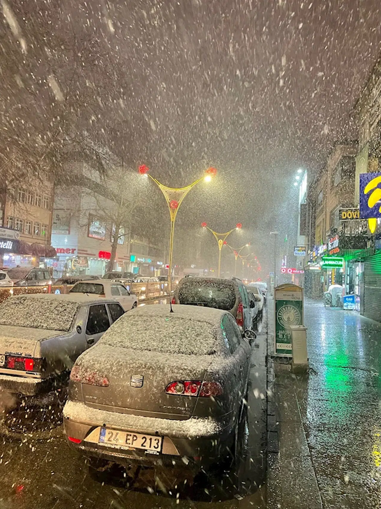 Muzaffer KOŞAN/ ERZİNCAN, (DHA)- ERZİNCAN ve çevresinde etkili olan yağmur, akşam saatlerinde yerini kara bıraktı. Yoğun kar nedeniyle sürücüler zor anlar yaşadı.