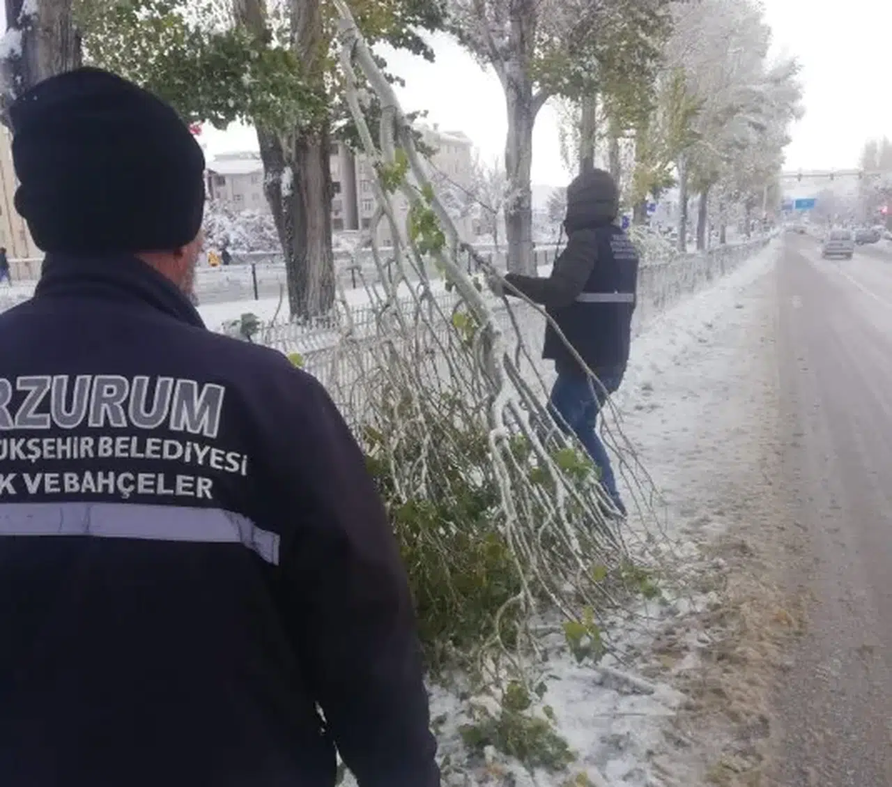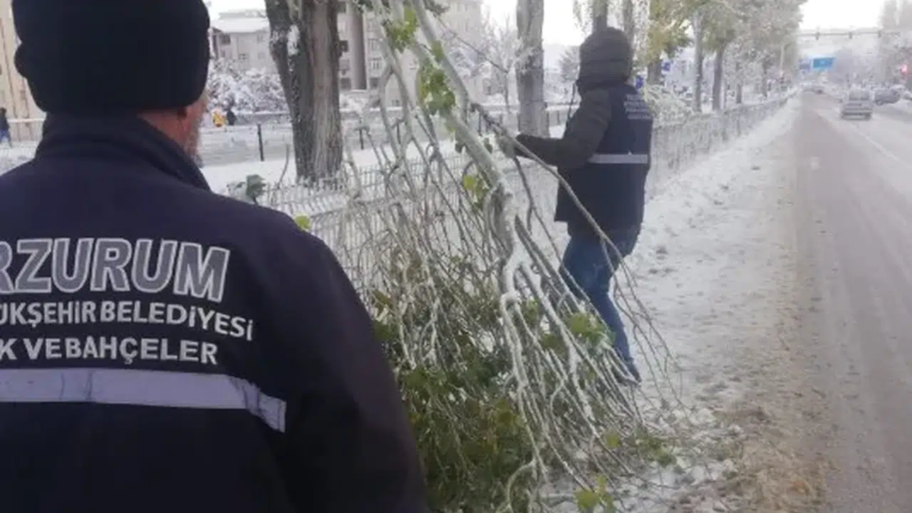 Erzurum'da etkili olan kar yağışının ardından Erzurum Büyükşehir Belediyesi ekipleri, şehrin dört bir yanında yoğun bir kar temizleme, tuzlama ve ağaç budama çalışması başlattı.