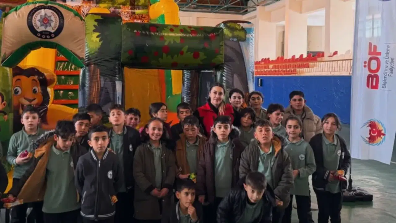 Erzurum Emniyet Müdürlüğü koordinesinde Çat ilçesinde düzenlenen sosyal etkinlikte yaklaşık 150 çocuk eğlenceli ve öğretici aktivitelerle buluştu.