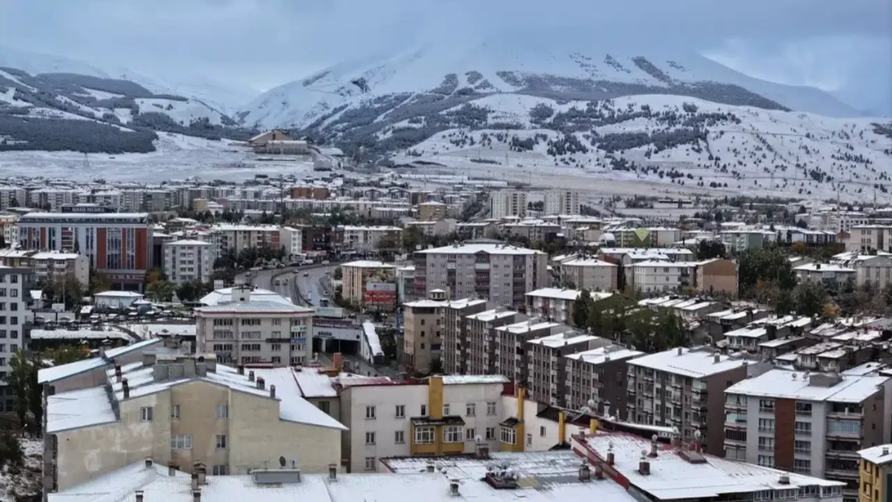 Erzurum şehir merkezine mevsimin ilk karı yağdı.