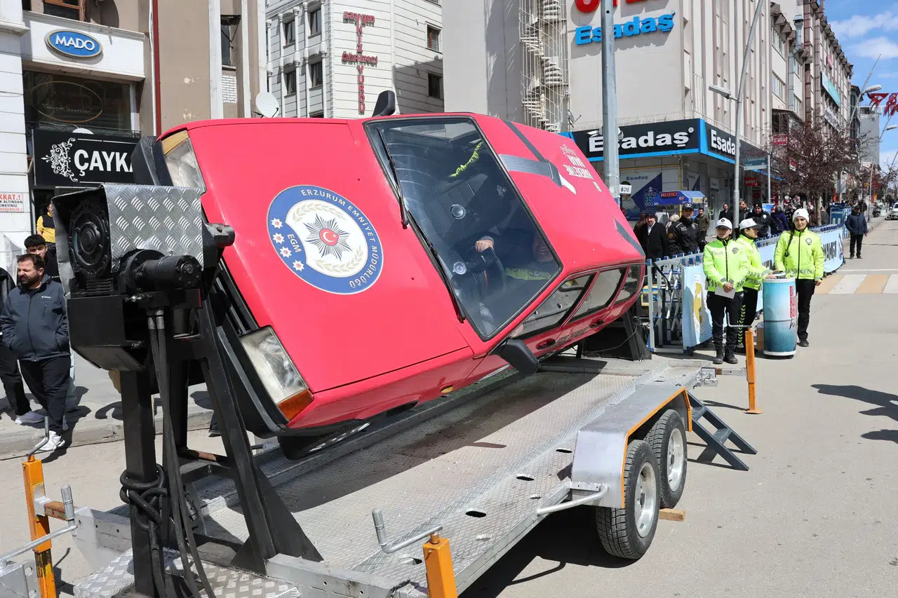 Erzurum Valisi Aydın Baruş ile İl Emniyet Müdürü Onur Karaburun’un katılımıyla gerçekleştirilen etkinlikte, emniyet kemerinin hayati önemi uygulamalı olarak anlatıldı. Simülasyon aracı sayesinde vatandaşlar, olası bir kaza anında emniyet kemeri kullanımının hayat kurtarıcı etkisini deneyimleme fırsatı buldu.