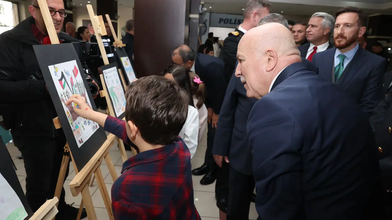 Polis teşkilatının kıymetli evlatları tarafından hazırlanan sergide, Filistin’de yaşanan insanlık dramına dikkat çekilerek barış, adalet ve özgürlük temaları işlendi. Etkinliğe katılan Başkan Sekmen, anlamlı çalışmada emeği geçen tüm çocukları ve öğretmenleri tebrik etti.