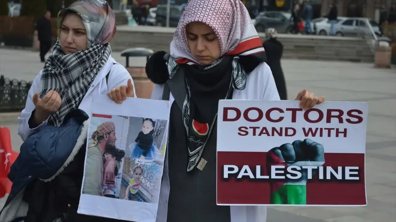 "Sessiz yürüyüşümüz 14 haftadır Türkiye'nin her bölgesinden 40'tan fazla ilde, kendini insanlığı yaşatmaya adamış sağlık çalışanlarının katkısıyla devam ediyor. Her hafta beyaz önlüklerimizle yürüyerek 'Hiçbir katilin ve hiçbir teröristin yaptığı yanına kalmadığı gibi senin de yaptıkların yanına kalmayacak İsrail.' diyoruz. Sen kaybedeceksin, insanlık kazanacak, Filistin kazanacak. Beyaz önlükleriyle soykırıma karşı duvar örenler kazanacak. Yıktığın hastanelerde, bütün insanlığın hayatını kurtarmaya devam eden Gazzeli meslektaşlarımız kazanacak."