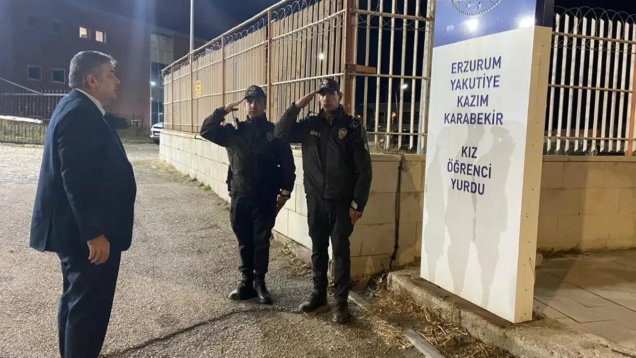 Erzurum İl Emniyet Müdürü Onur Karaburun, Atatürk Üniversitesi yerleşkesinde bulunan Kazım Karabekir ve Hattat Hasan Çelebi Kız Öğrenci Yurtları giriş-çıkış noktalarında alınan emniyet tedbirlerini yerinde denetledi.