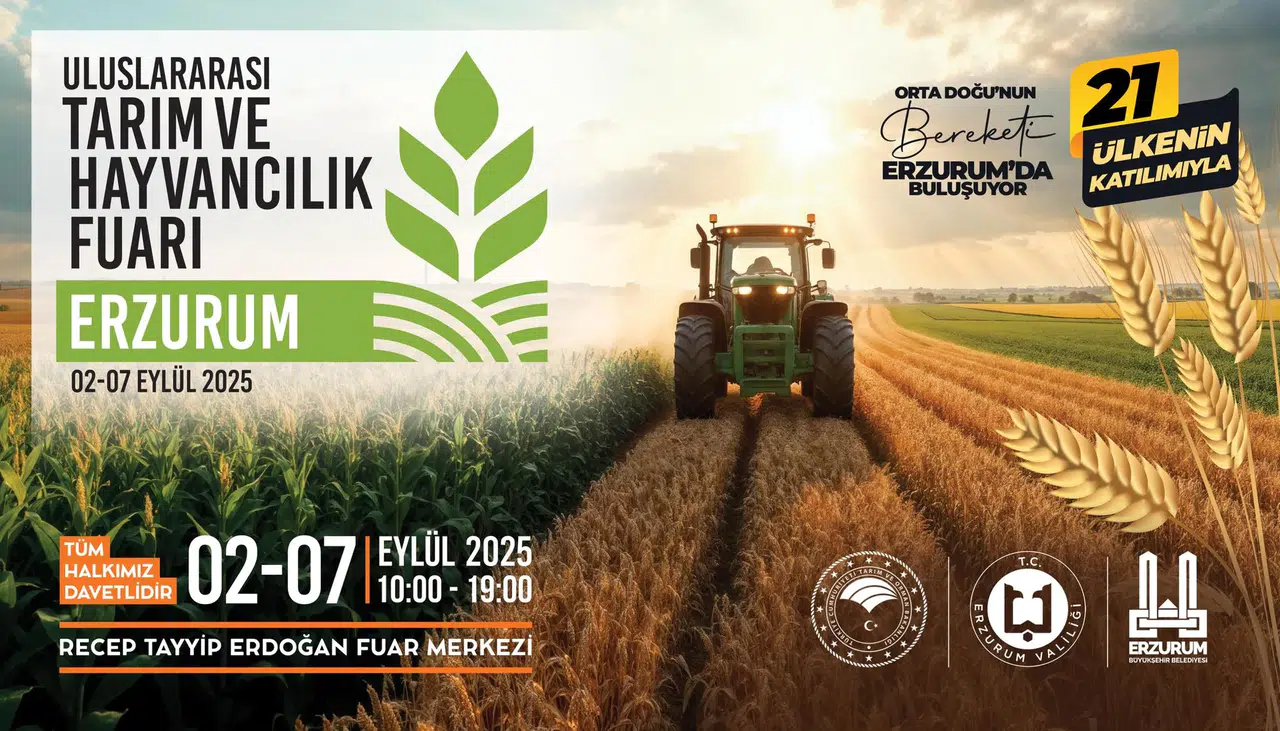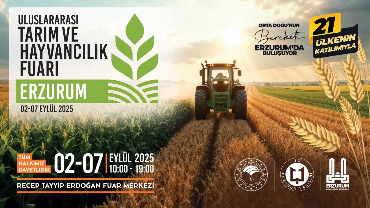Erzurum Büyükşehir Belediyesi ev sahipliğinde düzenlenecek olan Tarım ve Hayvancılık Fuarı, 2-7 Eylül tarihleri arasında Recep Tayyip Erdoğan Fuar Merkezinde kapılarını açıyor.