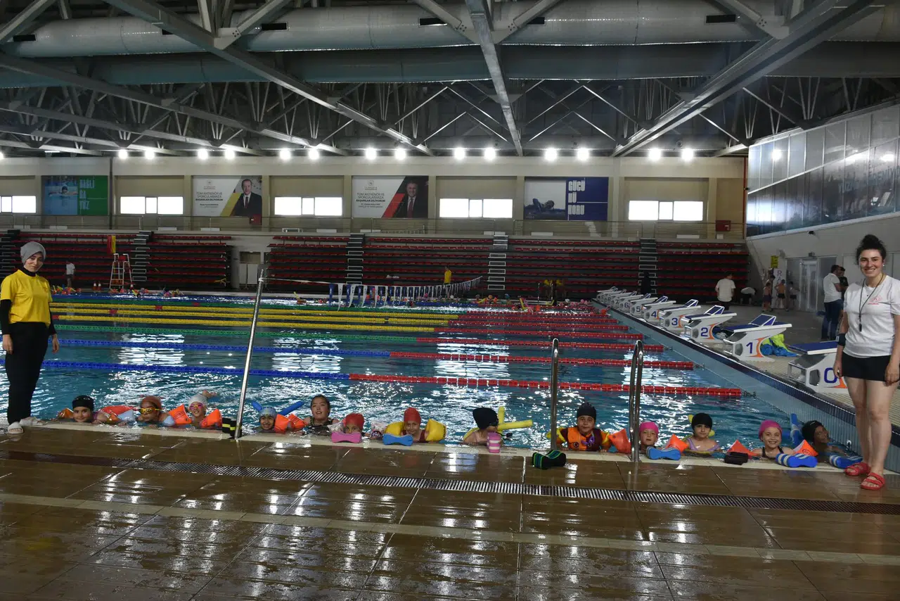 Erzurum Gençlik ve Spor İl Müdürlüğü, tam olimpik yüzme havuzunda gerçekleşen eğitimlerde, geleceğin yüzücülerini yetiştirmek için çalışmalara hız verdi. Proje, çocukların yüzme öğrenerek hem sağlıklı bir yaşam sürmelerine katkı sağlamayı hem de boğulma gibi risklerin önüne geçmeyi amaçlıyor.