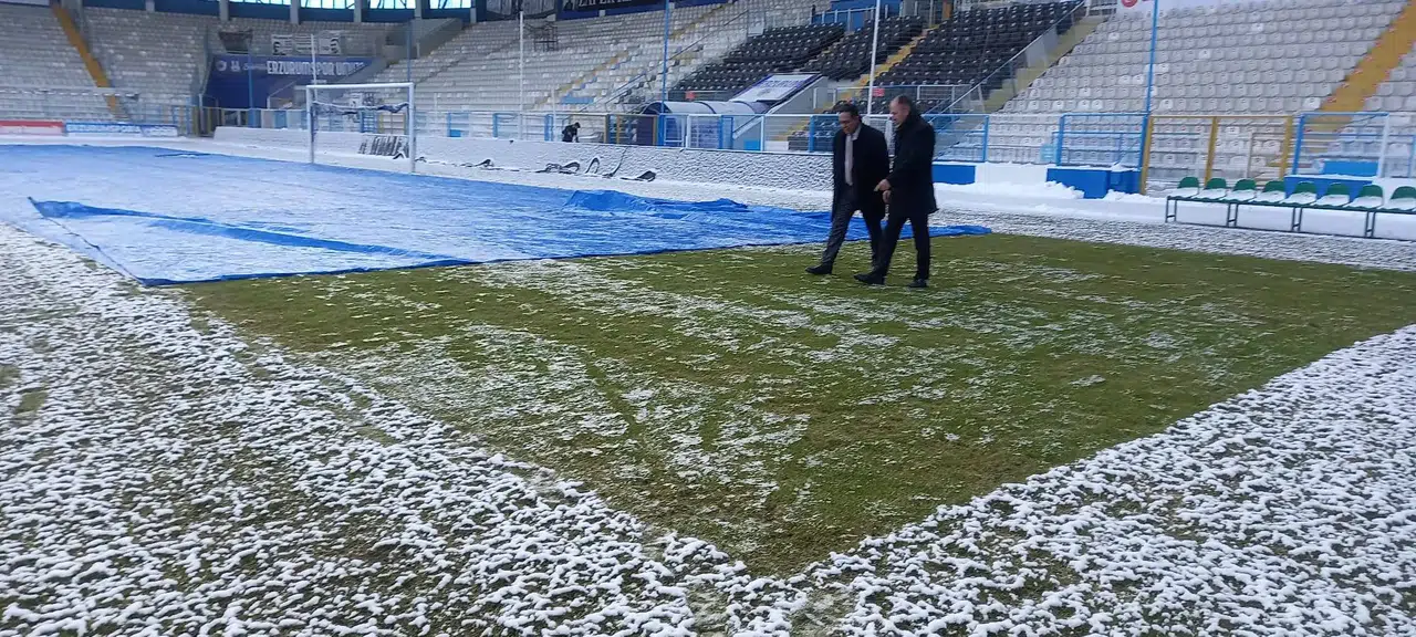 Erzurum’da zorlu kış şartlarına rağmen stadyum zemininde yürütülen koruma ve bakım çalışmaları aralıksız sürdürülüyor. Erzurumspor ile Çaykur Rizespor arasında oynanacak Ziraat Türkiye Kupası karşılaşması öncesinde saha zemini özel önlemlerle maç gününe hazırlandı.