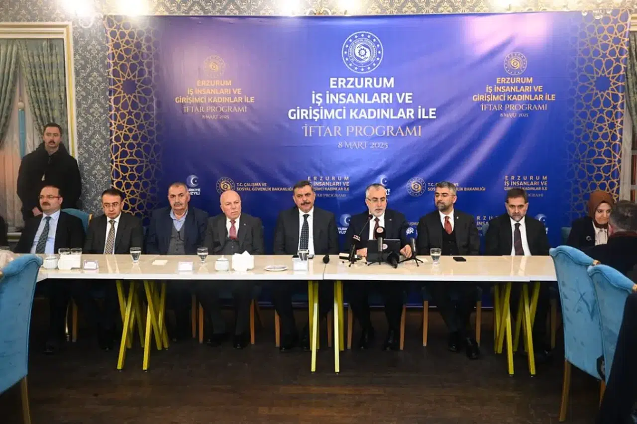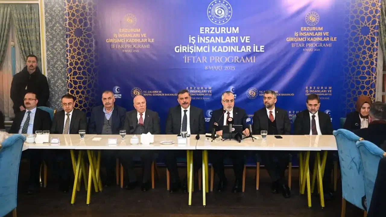 Erzurum Valiliği tarafından düzenlenen “Erzurum İş İnsanları ve Girişimci Kadınlar ile İftar Programında, Çalışma ve Sosyal Güvenlik Bakanı Prof. Dr. Vedat Işıkhan ve Erzurum Valisi Mustafa Çiftçi, iş insanları, kadın girişimciler ve sivil toplum kuruluşu (STK) temsilcileriyle iftar sofrasında buluştu.