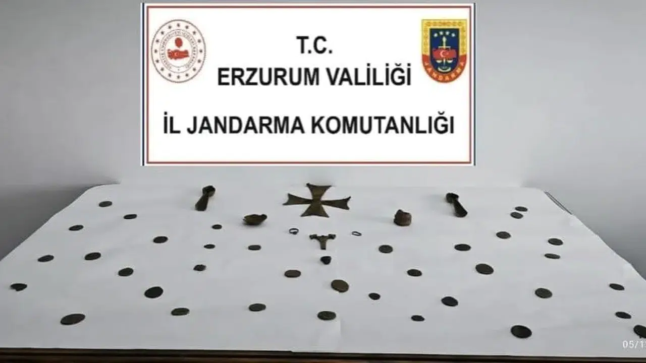 Tekman ilçesinin Gökoğlan Mahallesi'nde yapılan kontroller sırasında, Roma Dönemi'ne ait olduğu değerlendirilen 47 adet tarihi eser ele geçirildi. Operasyon kapsamında 38 adet sikke, 3 adet yüzük, 1 adet haç objesi, 3 adet oval parça ve 2 adet kaşık bulundu.