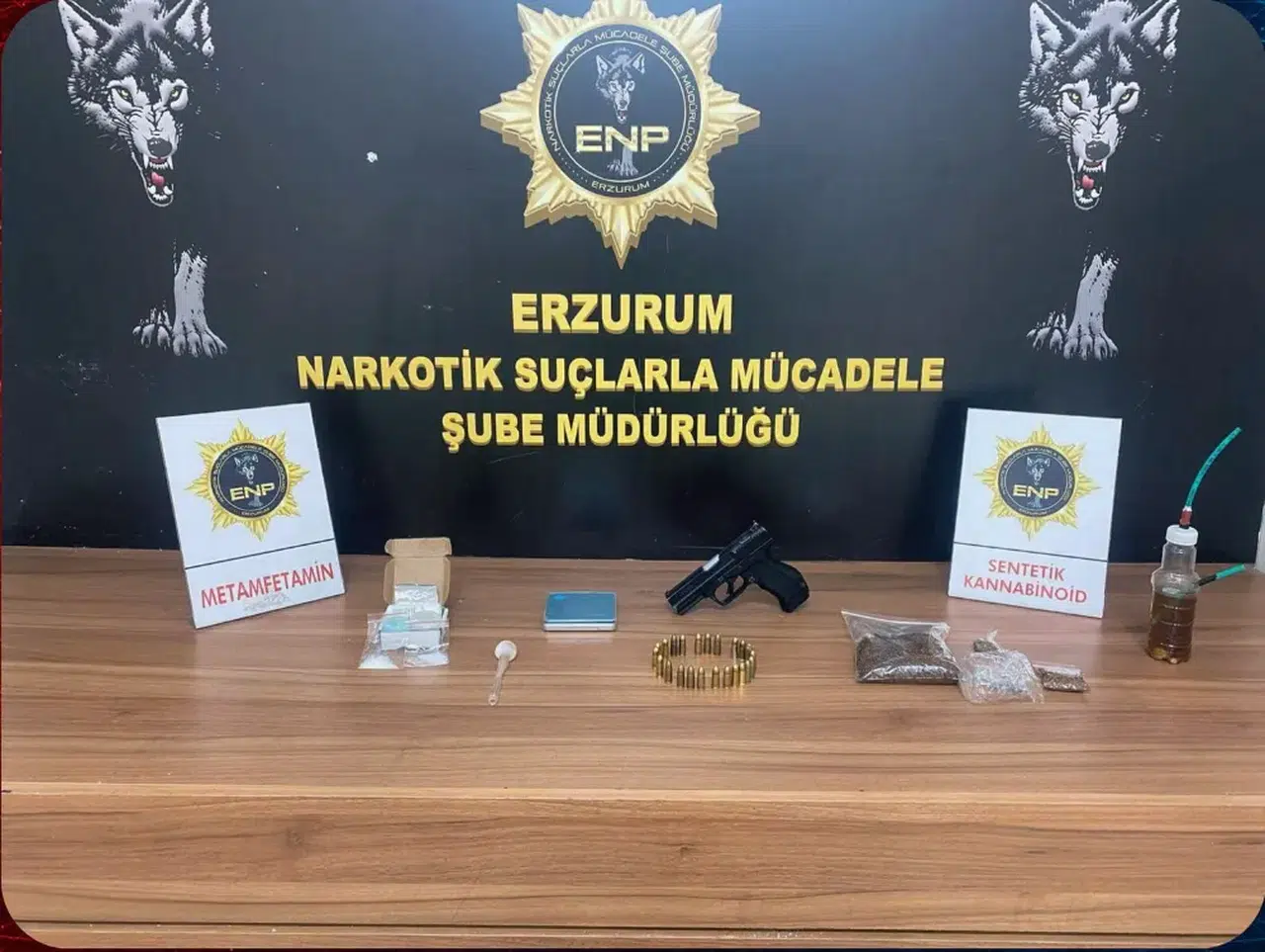 Erzurum Cumhuriyet Başsavcılığı koordinesinde, İl Emniyet Müdürlüğü Narkotik Suçlarla Mücadele Şube Müdürlüğü ekiplerince uyuşturucu madde ticareti yapan sokak satıcılarına yönelik operasyon gerçekleştirildi. Yapılan aramalarda 169 gram uyuşturucu madde, 11 adet uyuşturucu kullanım aparatı, 1 adet hassas terazi, 2 adet ruhsatsız tabanca, 40 adet fişek ve 161.200 TL, 500 Euro, 400 ABD doları suç geliri ele geçirildi.