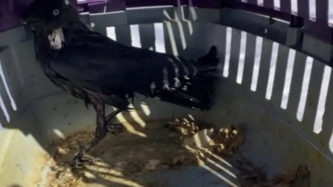 Erzurum'da vatandaşlar tarafından bulunan karga, kanat, kuyruk ve ayaklarındaki yapışkandan kurtarıldı. Veteriner hekim tarafından temizlenen karga, bakım ve beslenmesinin ardından doğaya salındı.
